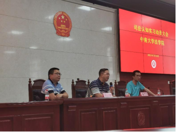 随后,彭中礼副院长给了同学们以下几点建议:一是正确认识司法认知实习,此次实习是书本知识到实践的转变,通过在具体情境中学习,同学们可以客观全面地了解司法程序;二是珍惜司法认知实习的机会。本次实习是既是提高自己能力的机会,也是老师们争取来的难得的机会;三是做好司法认知实习的规划。设立明确的目标,积极参与,从“边缘者”到“参与人”;四是认真开展司法实习,不高谈阔论、理想主义,而是要脚踏实地、虚心求问,进而在实践中弄寻求真知。此外,彭院长还对即将参与实习的同学提出四点要求,分别是讲政治、讲安全、讲纪律和讲礼貌。