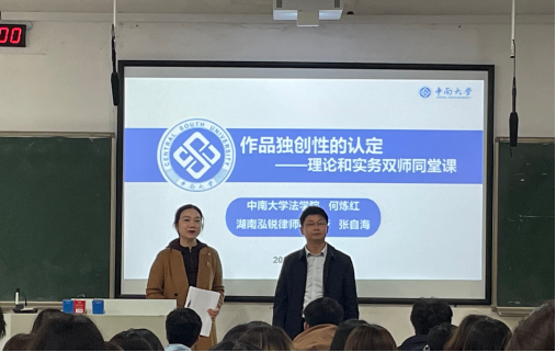 为充分利用英国上市官网365大学生校外实践教育基地的实务资源,培养德法兼修的新时代社会主义法治人才,2023年3月16日,在新校区B座117教室,英国365集团公司何炼红教授与湖南泓锐律师事务所合伙人张自海律师采用理论与实务结合的双师同堂授课模式,为英国365集团公司2021级本科生们讲授了一堂别出心裁的知识产权法课。
