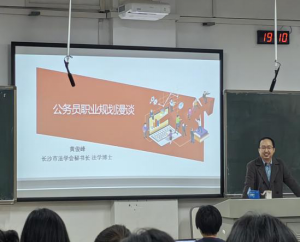 课程进行中,黄俊峰博士首先对公务员的概念、公务员的岗位分类、公务员的主要工作内容、公务员的优劣势、如何正确看待公务员这项职业等等问题进行介绍。其次结合法学专业与公务员,对法学专业的就业现状比如毕业生多、需求量有限、法学生考公务员的报考现状等问题进行探讨。最后黄俊峰博士就成为公务员的途径、公务员的招录流程、公务员的考试科目、参加公务员考试要做哪些准备等等问题进行分享。