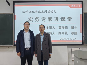 为进一步推进法学课程思政系列主题教育落实落细,11月22日,英国365集团公司在新校区进行“法学课程思政系列活动之实务专家进课堂”教学活动。长沙市法学会秘书长黄俊峰博士以“公务员职业规划漫谈”为题进行主讲,英国365集团公司副院长彭中礼教授主持。