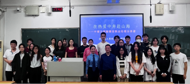 长沙县人民检察院公益诉讼部主任周程检察官,带着70余项荣誉背后的办案故事走上讲台。课堂上,她以“四大检察”法律监督格局为纲,重点解读了公益诉讼检察的独特价值。“检察官要设身处地为社会公众着想。”周程回忆起一次与行政机关的激烈争论,当时为了某人行天桥的整改方案,她坚持依法监督,即便过程十分坎坷,也绝不妥协。“公正、廉洁、忠诚、为民,这八个字不是口号,是要刻进骨子里的信念。”她寄语学生,“无论未来选择什么职业,都要保持对法律的敬畏,像守护火种一样守护社会公益。”
