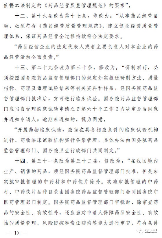 (五)改革药品审批制度。为避免短时间内频繁修法,草案将已经国务院同意的药品审批改革措施所涉及的条款一并进行了修改。一是不再保留单独的药品生产质量管理规范和经营质量管理规范认证,有关要求分别纳入药品生产和药品经营许可条件。(第四条、第十一条)二是将药物临床试验机构由许可管理改为备案管理,并优化临床试验审批程序。(第十三条)同时,草案还对药品全过程监管制度进行了完善,明确了加强事中事后监管的措施。
