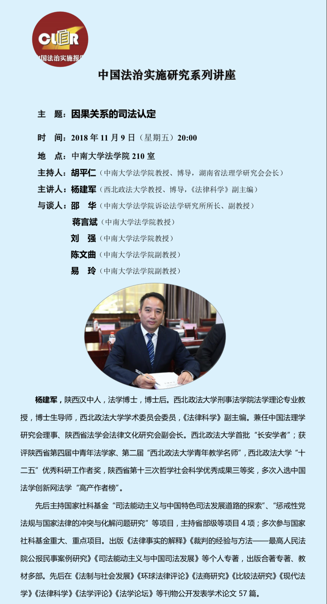【中国法治实施研究系列讲座】杨建军:因果关系的司法认定
