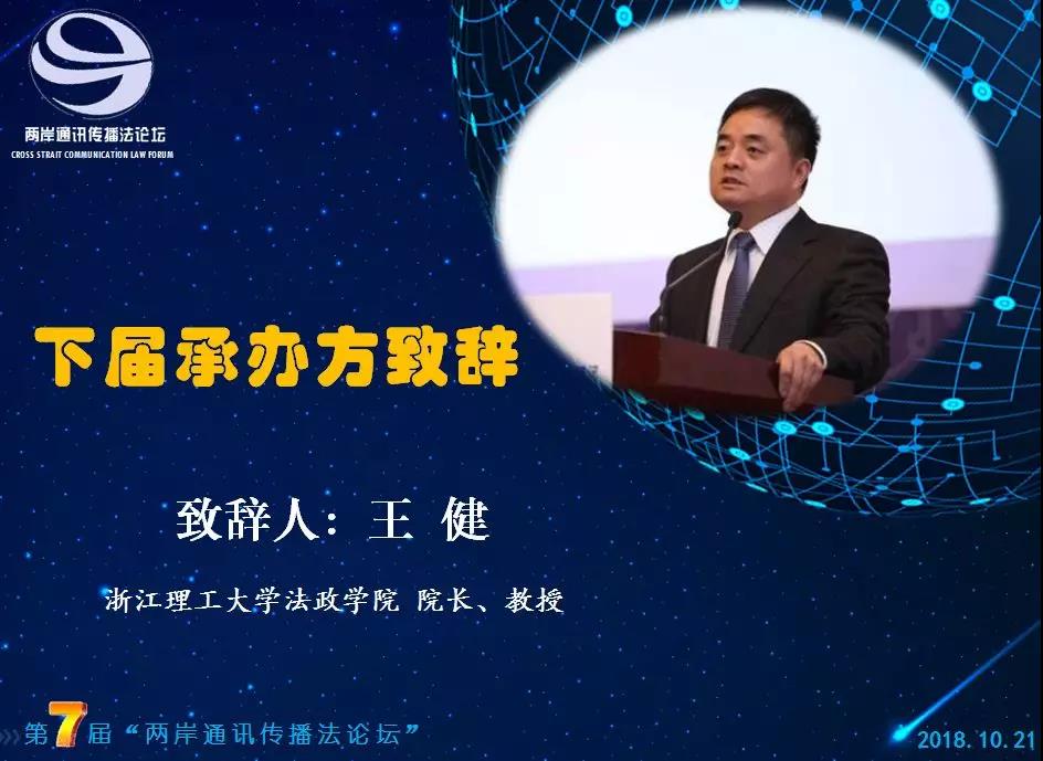下届承办方、浙江理工大学法政学院院长王健教授远程致辞