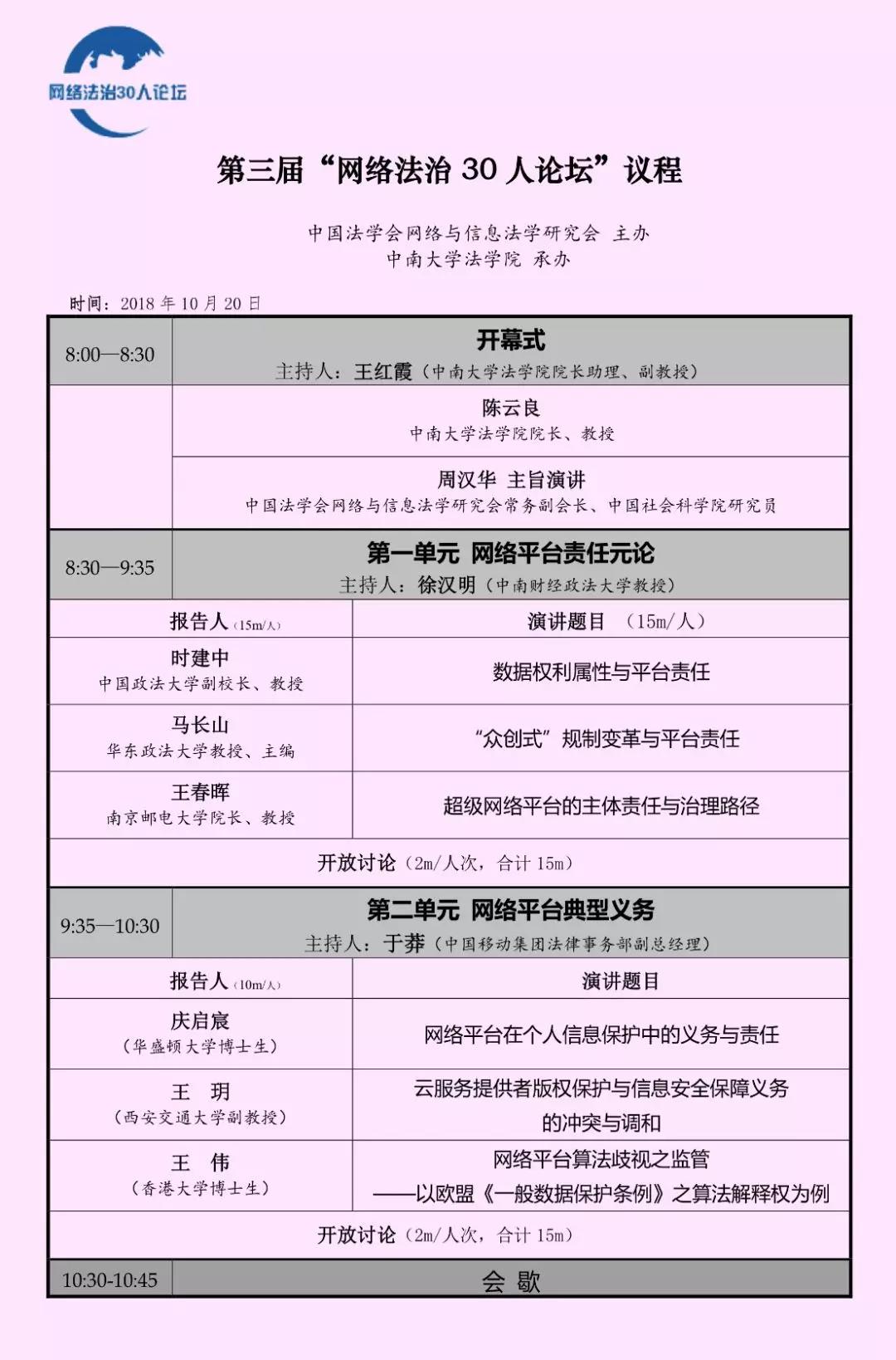 2018年10月20日,第三届“网络法治30人论坛”在长沙隆重召开。本届论坛由中国法学会网络与信息法学研究会主办,“网络法治研究方阵单位”英国365集团公司承办。来自50多家科研机构,10余家典范通信与网络平台,以及中央网信办、中国电子商务协会等政府和社会组织的百余位学术和实务精英出席会议。