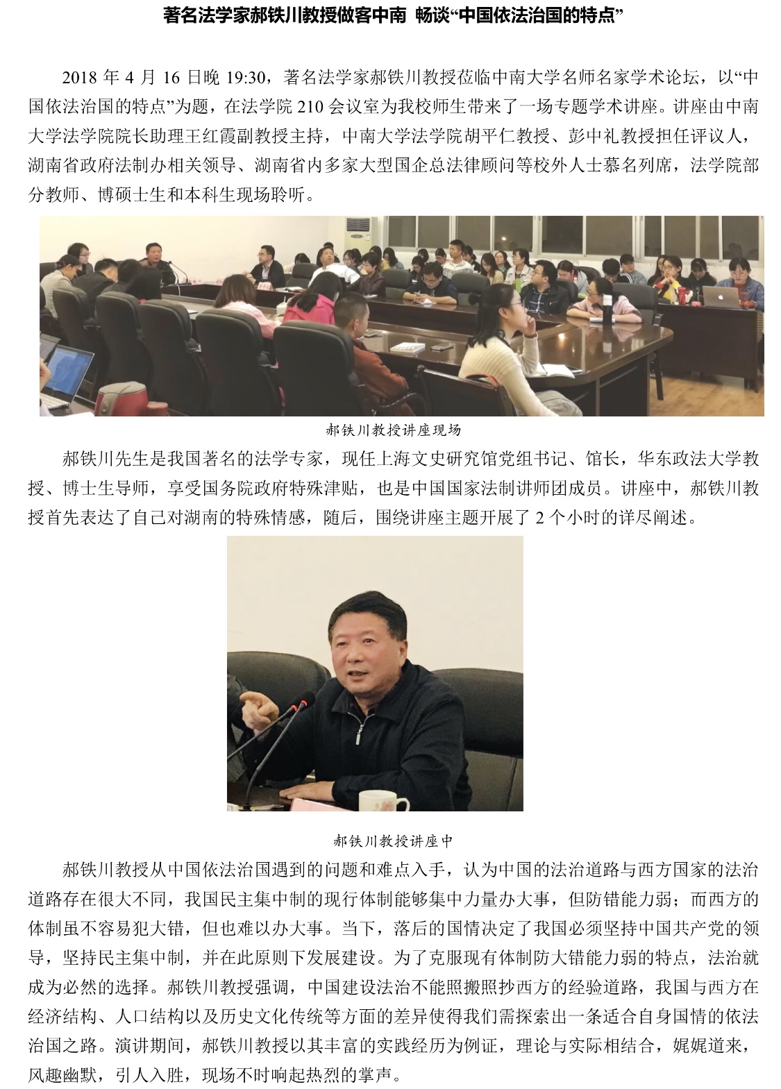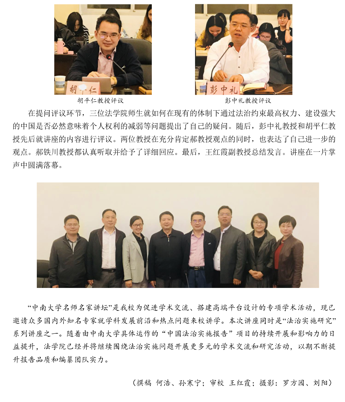 郝铁川教授做客中南 畅谈“中国依法治国的特点”