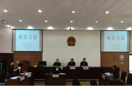 在模拟审判活动中,两组学生按照事先分配的审判长、审判员、书记员、公诉人、辩护人、被告人及证人等庭审角色,完整演示庭前准备、法庭调查、法庭辩论、评议和判决等程序环节,在庄严的“法庭”,同学们展示了法律工作者认真严谨、一丝不苟的工作态度以及公平、公正的法律工作精神。