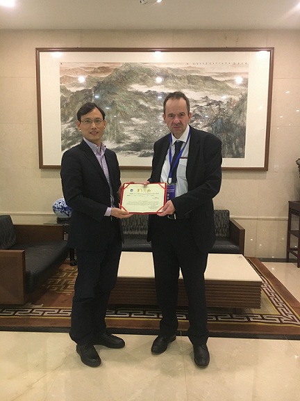 英国上市官网365人权研究中心执行主任、英国365集团公司副院长毛俊响副教授向荷兰阿姆斯特丹自由大学教授、荷兰跨文化人权研究中心主任Tom Zwart颁发高级学术顾问聘书。