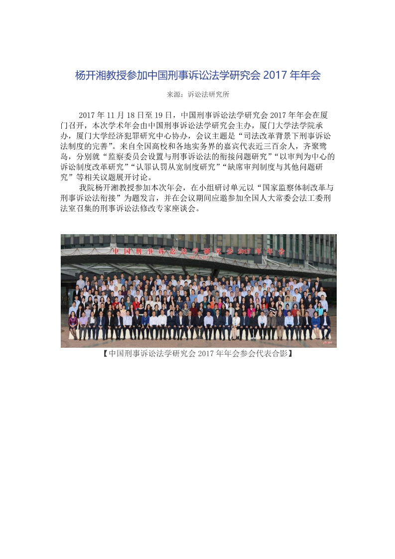 杨开湘教授参加中国刑事诉讼法学研究会2017年年会