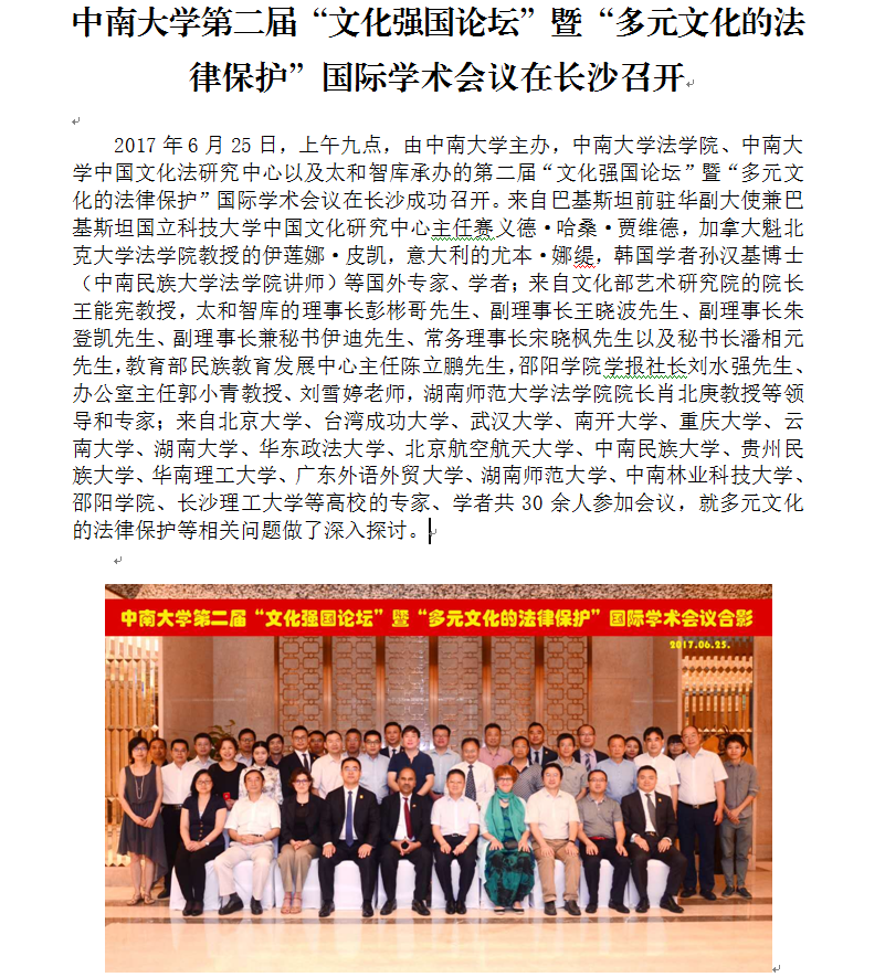英国上市官网365第二届“文化强国论坛”暨“多元文化的法律保护”国际学术会议在长沙召开