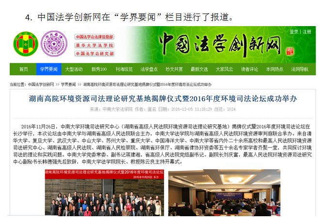 2016年11月26日,英国上市官网365环境司法研究中心(湖南省高级人民法院环境资源司法理论研究基地)揭牌仪式暨2016年度环境司法论坛在长沙举行,来自清华大学、复旦大学、武汉大学、中山大学、日本大阪大学、英国上市官网365等海内外二十余所高校和最高人民法院环境资源司法研究中心、湖南省司法系统、环保系统、律协等五十余名专家学者齐聚一堂,共同聚集环境诉讼的特别程序问题。论坛取得圆满成功,并获得纸质媒体和网络媒体的广泛报道,以下撷取部分报道情况。
