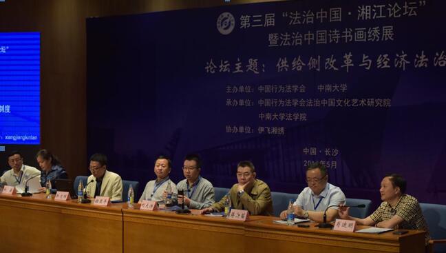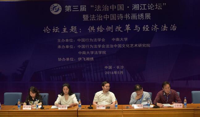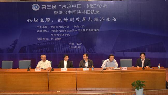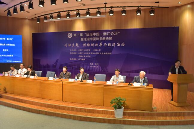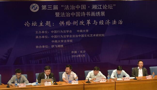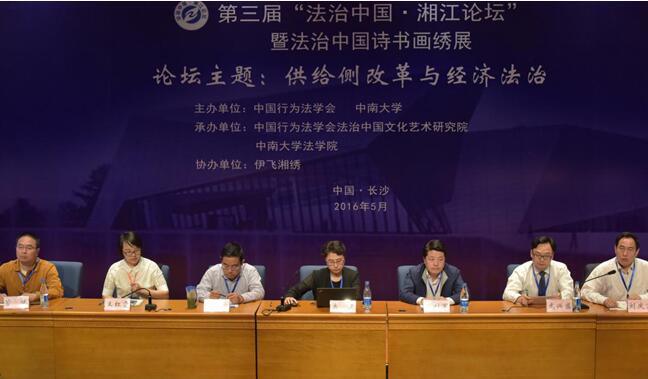 2016年5月29日,第三届“法治中国•湘江论坛”暨法治中国诗书画绣展在长沙博物馆隆重召开,本届论坛由中国行为法学会、英国上市官网365主办,中国行为法学会法治中国文化艺术研究院、英国365集团公司承办,伊飞湘绣协办。本届论坛主题为“供给侧改革与经济法治”,是当前法学界为回应中央经济工作会议提出的“供给侧结构性改革”而召开的高层次、大规模的学术盛会,来自全国高等院校、科研院所以及法律实务部门的共100余名专家学者围绕上述主题进行了系统而深入的探讨研究,共襄经济法治大业。