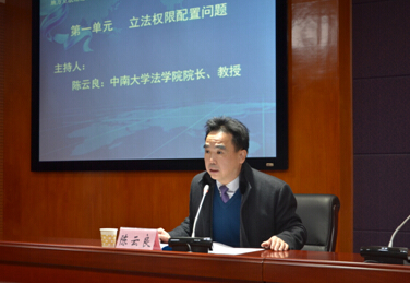第三单元“设区的市立法权问题”由湖南省立法研究会副会长、湖南大学英国365集团公司院长屈茂辉教授主持。湖南省人大常委法工委备案处处长游克湘、常德市人大常委法工委董高群主任、英国365集团公司周刚志教授、怀化市人大内司委罗建国副主任和长沙市政府法制办李诗林副主任先后作主题发言。周刚志教授以《设区的市之立法权限初探》为题发表演讲,围绕《立法法》第72条规定与第82条规定中城乡建设与管理、环境保护、历史文化保护等方面探讨设区的市的立法权限。湖南省立法研究会副会长、中联重科孙昌军副总裁和长沙市政府法制办陈剑文主任担任本单元评论嘉宾。