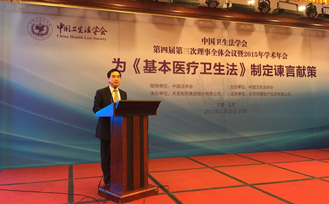 2015年11月20日至 22日,由中国法学会指导、中国卫生法学会主办、天圣制药集团股份有限公司承办的中国卫生法学会第四届第三次理事全体会议暨2015年学术年会在北京瑞安宾馆隆重举行。本次大会的主题是“为基本医疗卫生立法谏言献策”,具体的会议议题涵括了基本医疗卫生法的立法模式、健康权的宪法保障、公共卫生法律制度、基本药物制度、基本医疗保险制度、基本医疗救助制度等多个方面。我院陈云良教授,邵华副教授,陈海嵩副教授,博士后李现红老师,博士生徐巍、赵伟,硕士生曾荣峰、催雪炜、叶燕谟、翁雯出席会议。