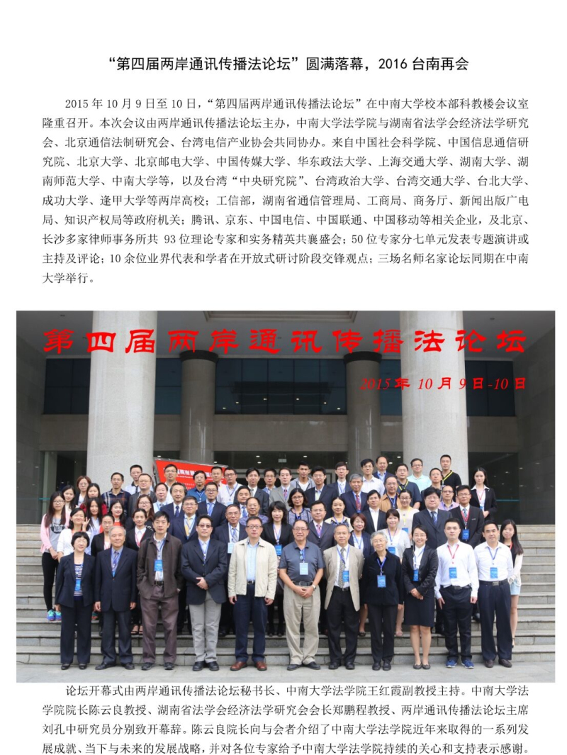 第四届两岸通讯传播法论坛圆满落幕 2016台南再会