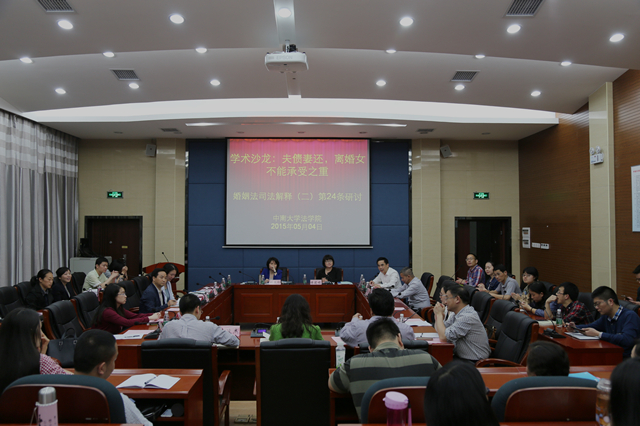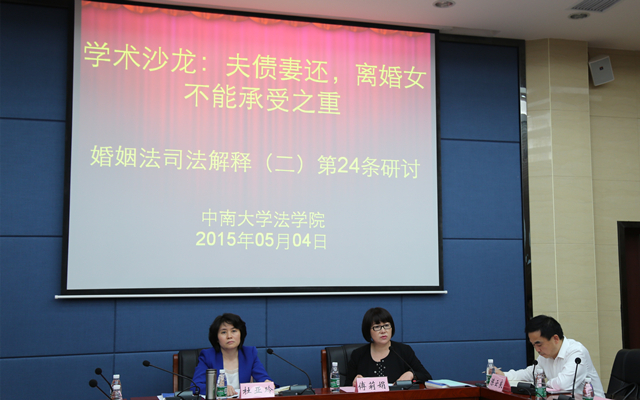 英国365集团公司一直秉承“经世致用”的理念,关注社会热点,积极推进湖南法治建设。近日,我院组织开展了题为“夫债妻还,离婚女不能承受之重——《婚姻法司法解释(二)》第24条研讨”的学术沙龙,沙龙于2015年5月4日晚间在英国365集团公司123室举行,湖南省妇联主席杜亚玲、湖南省司法厅副厅长傅莉娟出席,湖南省高级人民法院、长沙市中级人民法院、天心区人民法院、长沙市人民检察院、长沙市妇联、英国365集团公司及湖南金州、君见律师事务所的各位司法工作者、法律专家、律师代表应邀参与讨论。会议主体关注社会现实问题,吸引了许多媒体人士、各界代表以及英国365集团公司的研究生和本科生与会。整个会议厅座无虚席,英国365集团公司院长陈云良教授担任主持人。