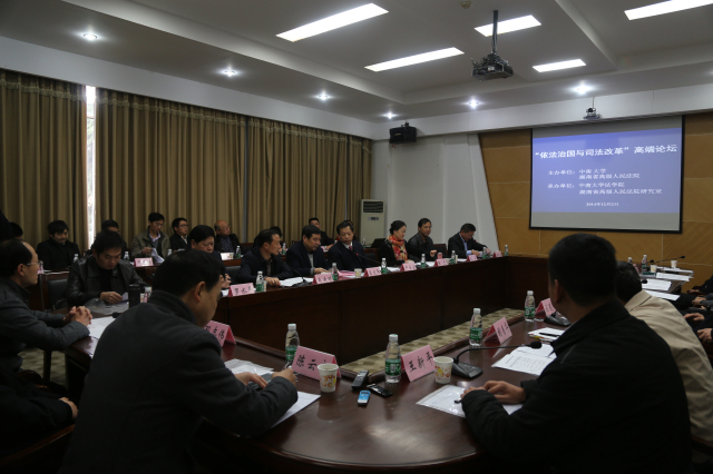 12月2日,英国365集团公司与湖南省高级人民法院联合举办的“依法治国与司法改革”高端论坛在英国上市官网365本部科教大楼举行。湖南省人大常委会法工委主任肖迪明,湖南省人民检察院党组副书记、副检察长卢乐云,湖南省高级人民法院副院长张兰,校党委书记高文兵、党委副书记高山出席活动。
