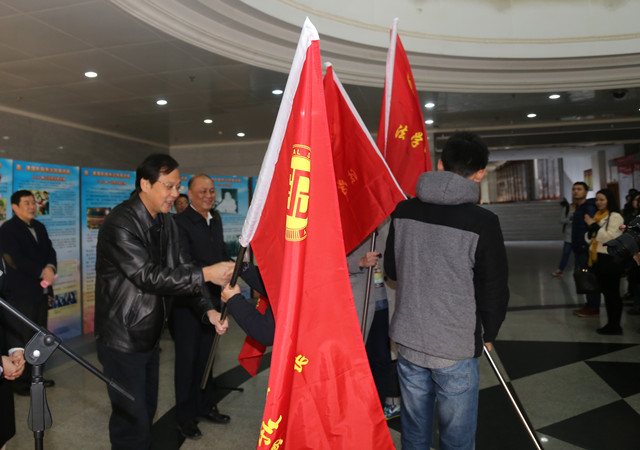 据悉,此次论坛是我校主办的“法治梦·中国梦”系列主题活动的理论研讨活动之一。此前,学校还举行了“中国宪法之路”大型图片巡回展开展仪式,以全面回顾中国宪法的发展历程和光辉成就,再现中国法治进程中的重大历史事件。高文兵、黄健柏、高山等参观图片展,并为志愿者授旗。