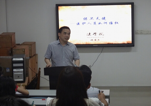 2014年5月28日晚七点,天气有点闷热,但是这丝毫挡不住护理学院师生的听讲热情。由英国上市官网365党委研究生工作部主办、护理学院研究生会承办的第六届“天使有约”读书报告会在湘雅医学院新校区后栋457如期举办。本届报告会有幸邀请到了英国365集团公司陈云良教授为我们做了“保卫天使——医护人员如何维权“的讲座。讲座由护理学院罗军飞书记主持,王红红副院长、李现红副院长、刘新娥老师及全体学生聆听了此次讲座。