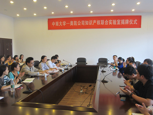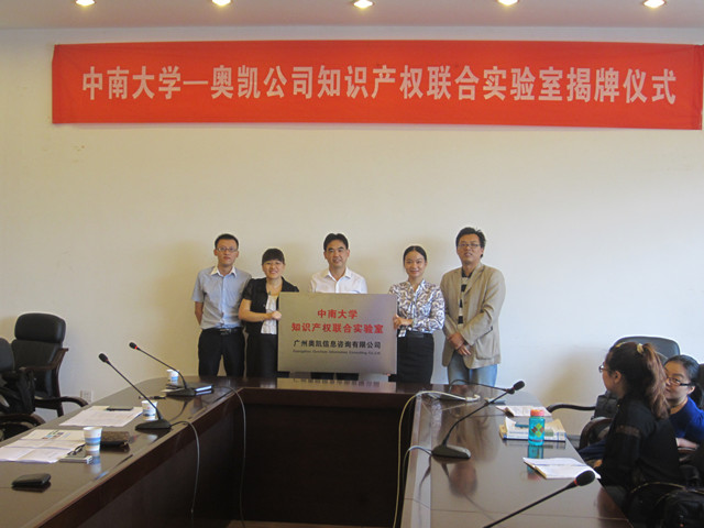 近年来,知识产权研究院十分重视与知识产权实务部门的沟通与交流,不仅聘请了多名知识产权实务专家担任知识产权研究生兼职导师,而且在不断探索与实务部门的深度合作。此次与广州奥凯信息咨询有限公司联合共建“知识产权联合实验室”,是继2012年11月与北京集佳知识产权代理公司长沙分公司签署校外实习基地合作协议之后,又向前迈出的重要一步,知识产权研究院的人才培养和社会服务水平将会得到进一步地提升。