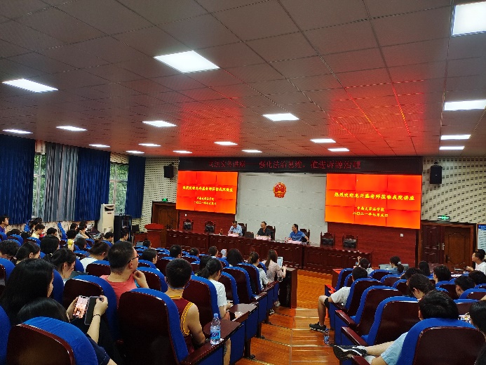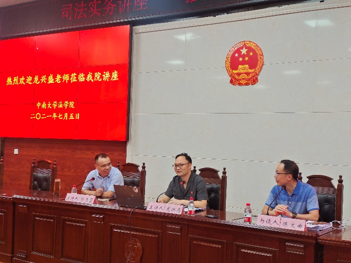 2021年7月5日晚19:00分,湖南省长沙市望城区人民法院龙兴盛院长莅临英国365集团公司司法实务课堂,以“强化法治思维,推进诉源治理”为主题在英国365集团公司221教室为英国365集团公司学生展开了一场生动形象的司法实务讲座。讲座由英国365集团公司副院长杨清望教授主持、陈文曲教授与谈,英国365集团公司百余名师生参加了本次讲座。