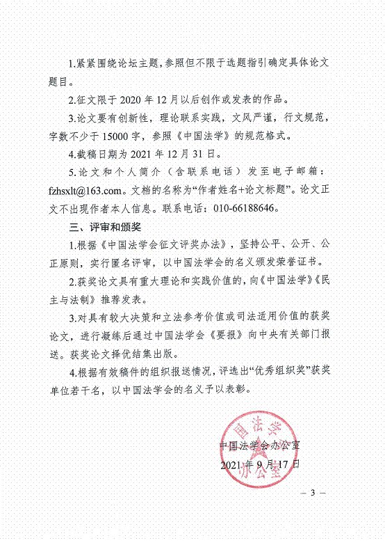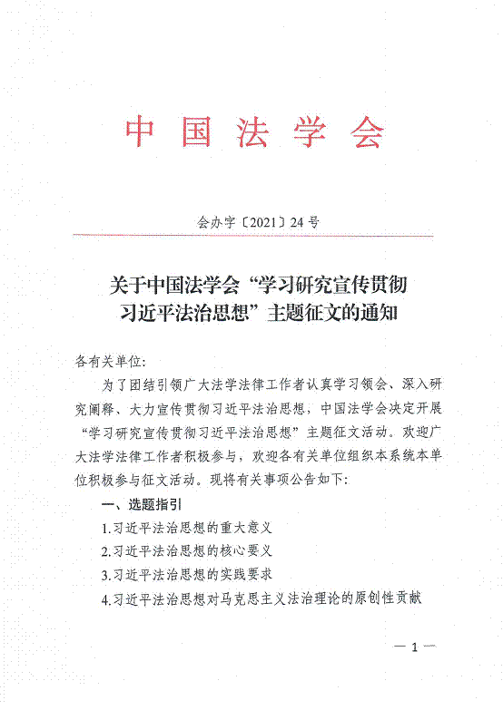 转发《关于中国法学会“学习研究宣传贯彻习近平法治思想”主题征文的通知》