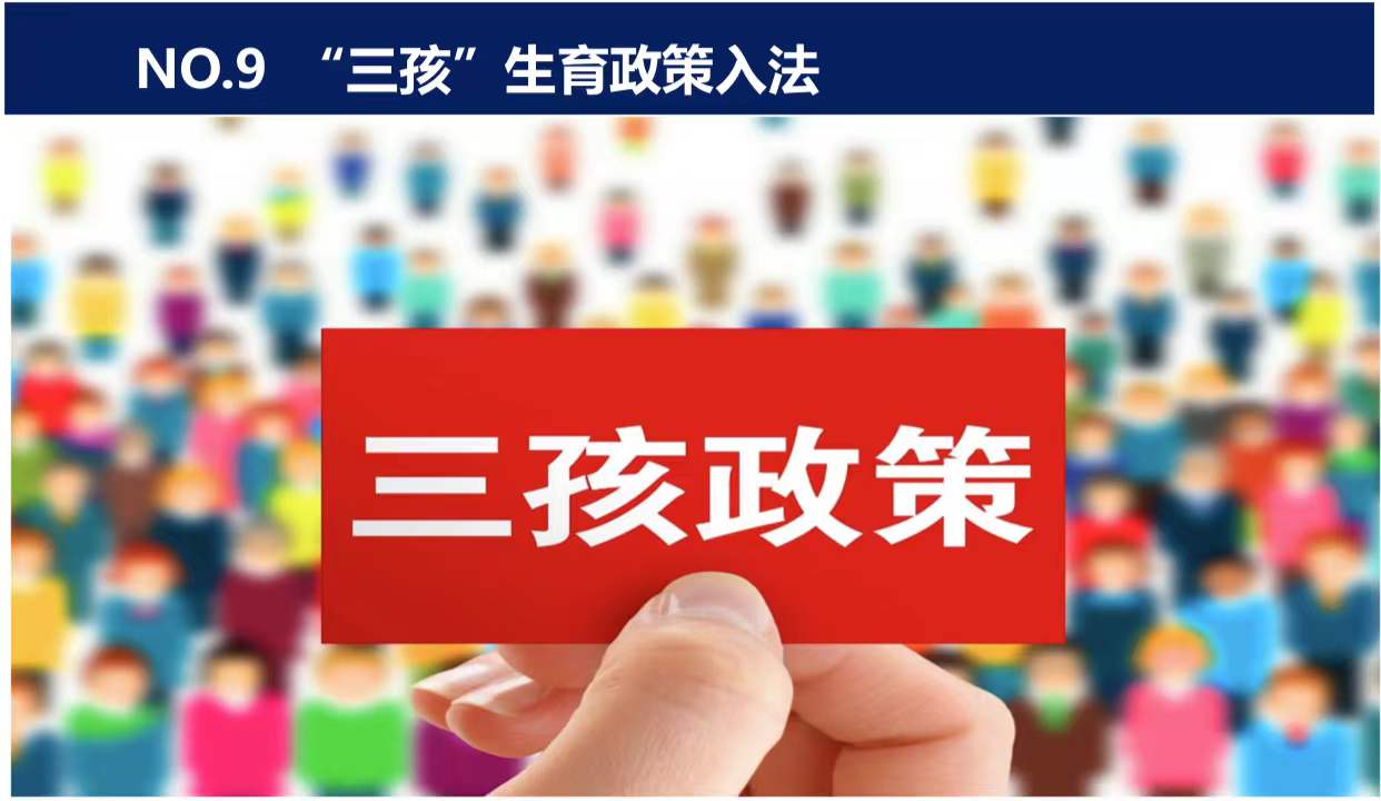 2021年7月20日,《中共中央、国务院关于优化生育政策促进人口长期均衡发展的决定》正式对外发布,明确规定实施一对夫妻可以生育三个子女政策(以下简称“三孩政策”),取消相关制约规定,完善配套支持措施。8月,《人口与计划生育法》修正,“三孩政策”写入法律。10月,《社会抚养费征收管理办法》等三部相关行政法规废止。截至2021年末,多部委相继制修订配套制度,20多个省份修改地方条例,延长产假、明确育儿假。