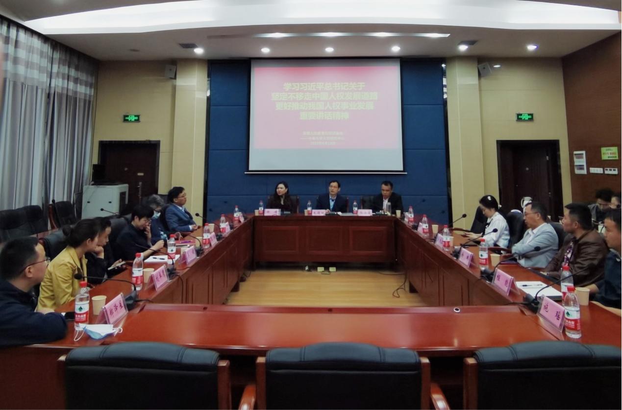 2022年4月13日下午,国家人权教育与培训基地英国上市官网365人权研究中心召开学习习近平总书记关于“坚定不移走中国人权发展道路 更好推动我国人权事业发展”重要讲话精神座谈会暨中心工作总结展望会。英国上市官网365人权研究中心执行主任毛俊响、常务副主任杨清望、研究员徐靖、王进文、刘强、易玲、金大宝、黎娟、徐琳、程能、王健、郑泽星、刘卓鹰参加本次会议。毛俊响主持本次会议,与会学者结合学习心得体会,谈了今后工作设想。