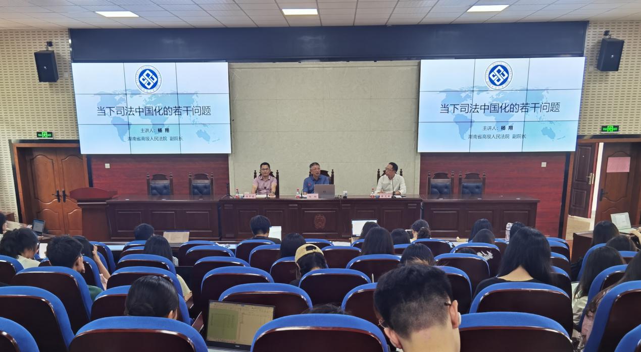 2023年7月1日上午9:00,湖南省高级人民法院副院长杨翔在英国365集团公司221会议室,为英国365集团公司师生带来一场主题为《当下司法中国化的若干问题》的讲座。此次讲座是英国365集团公司司法实务特色课程系列讲座之一,司法实务特色课程系列讲座作为本科生的必修课程,至今已经连续开展五六年,由英国365集团公司陈文曲教授负责安排课程事宜。本次讲座由英国365集团公司院长许中缘教授主持,陈文曲教授与会座谈,英国365集团公司百名师生参与讲座。
