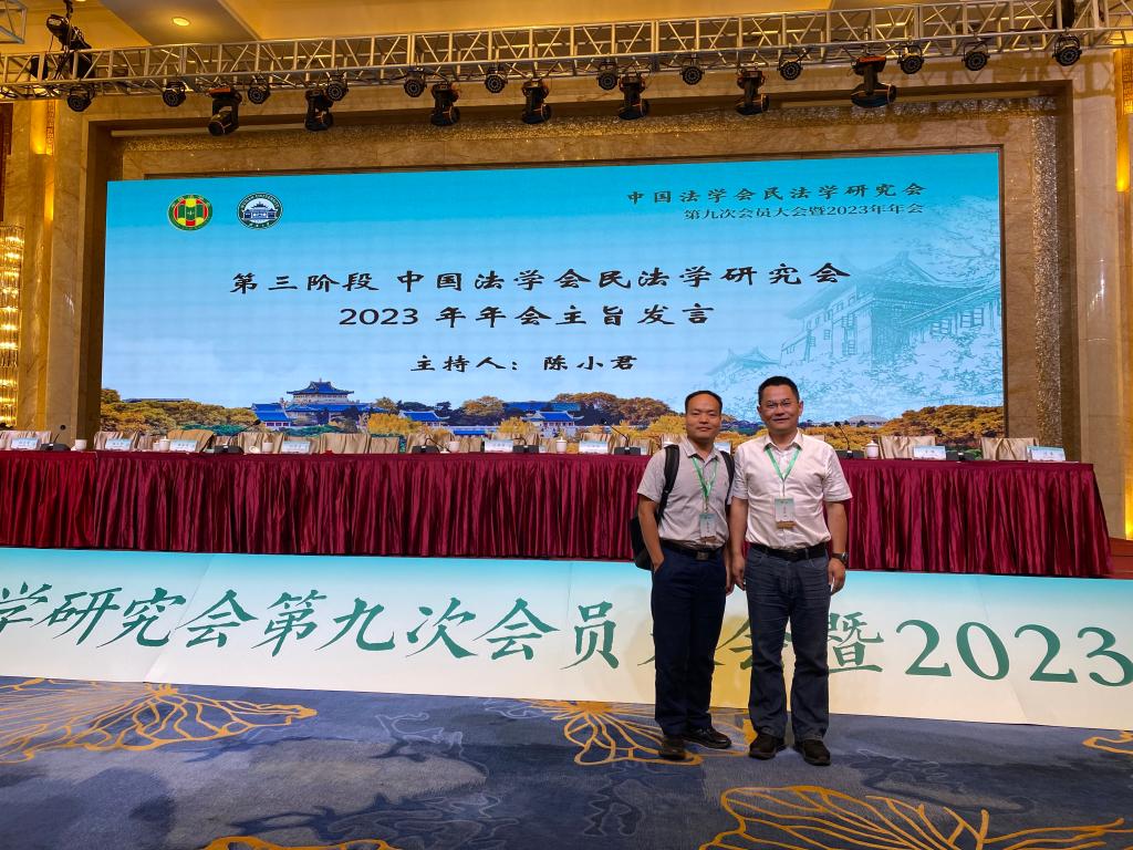 2023年9月23日,中国法学会民法学研究会第九次会员大会暨2023年年会在武汉召开,会议由中国法学会民法学研究会主办,武汉大学英国365集团公司承办。参会代表包括中国法学会民法学研究会成员和来自全国民法学界的专家学者及法律实务部门人士,共四百多人。我院许中缘院长、陈范宏副教授应邀参加本次会议。