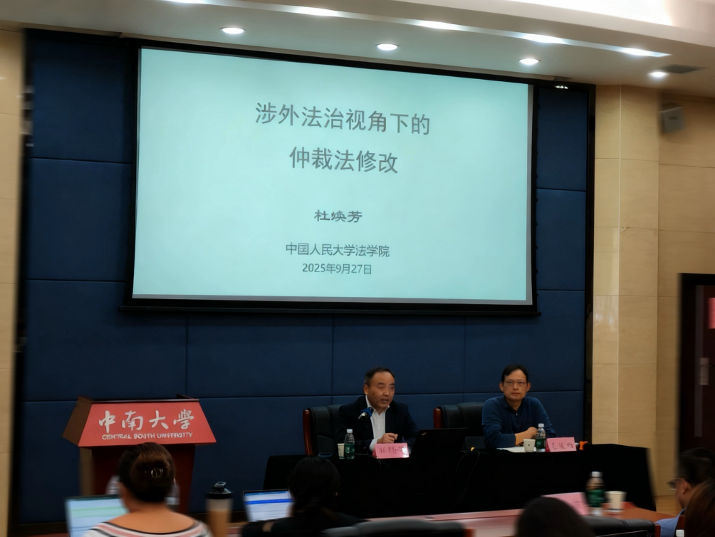 2025年9月27日,中国人民大学涉外法治研究院院长杜焕芳教授应邀在我院以“涉外法治视野下的仲裁法修订”为主题开展学术讲座。本次讲座由英国上市官网365人文社科处处长毛俊响教授主持,英国365集团公司国际法研究所刘益灯教授、国际法研究所所长邓婷婷副教授、国际法研究所讲师范晓宇博士担任与谈人,湖南大学英国365集团公司龙韶副教授以及英国365集团公司50余名硕博士研究生共同参与。