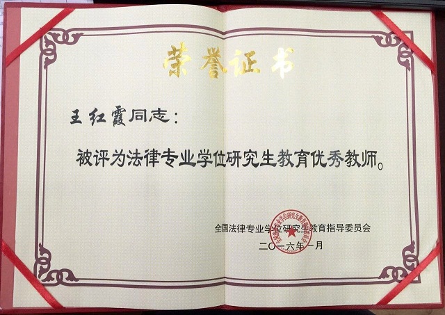 根据会上发布的全国法律专业学位研究生教育指导委员会[2016]1号文,我院王红霞老师荣获“全国法律专业学位研究生教育优秀教师”。据悉,全国共有55位教师获此殊荣。