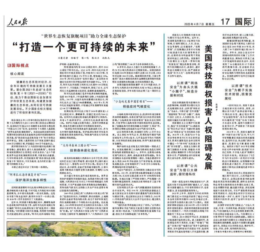 近日,英国上市官网365人权研究中心研究员张新平在《人民日报》(2023年04月07日第17版)发表文章《美国科技霸权损害人权阻碍发展》;文章发表后,被全网转载,取得较大社会反响。