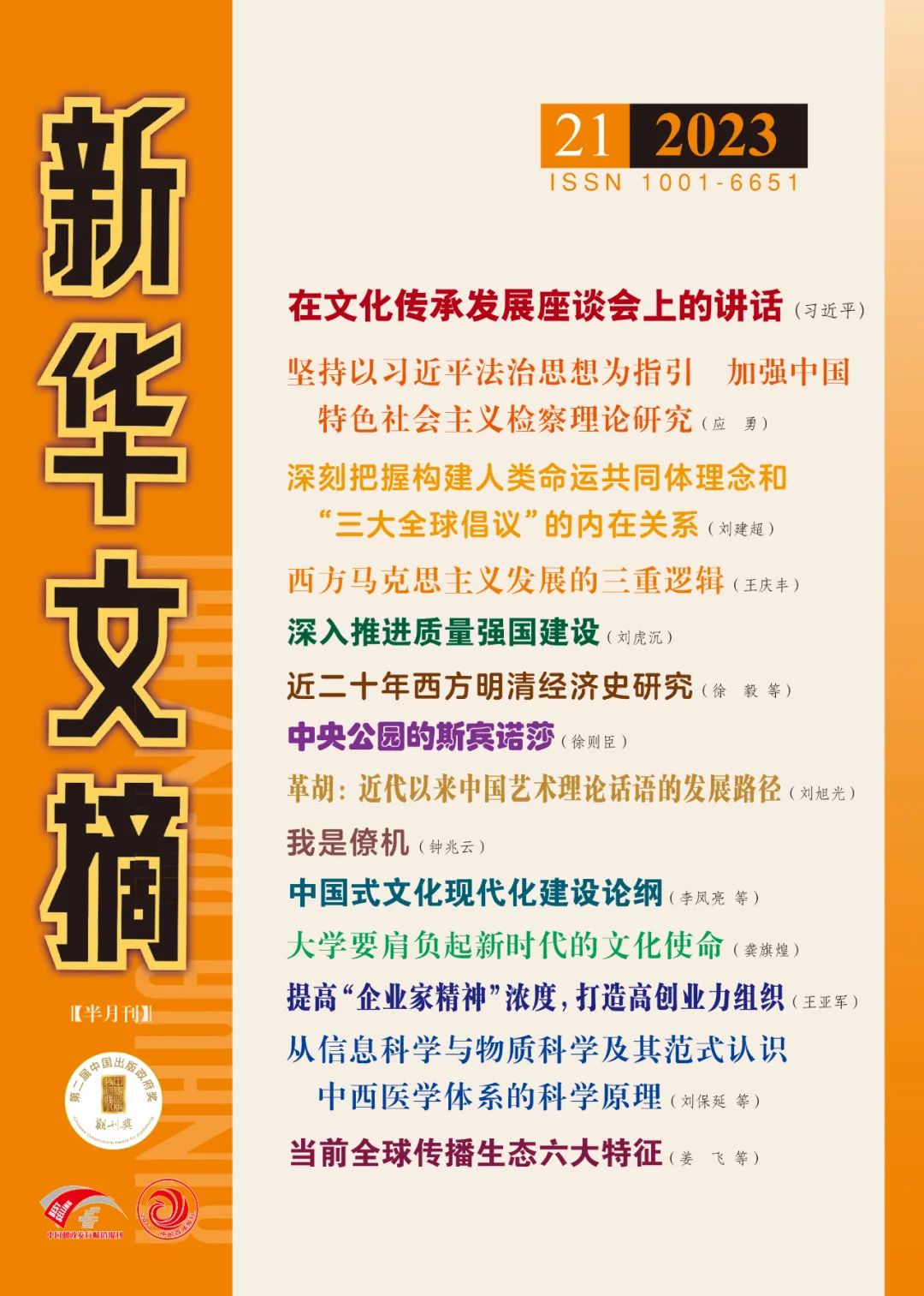 据悉,《新华文摘》是我国顶级权威文摘机构,居国内四大文摘(《新华文摘》《中国社会科学文摘》《高等学校文科学术文摘》《人大复印报刊资料》)之首。由人民出版社主办的大型理论性、综合性、资料性文摘类权威期刊,因其选登文章的权威性、思想性和可读性享誉海内外,是我国最具影响的哲学社会科学文摘类杂志。