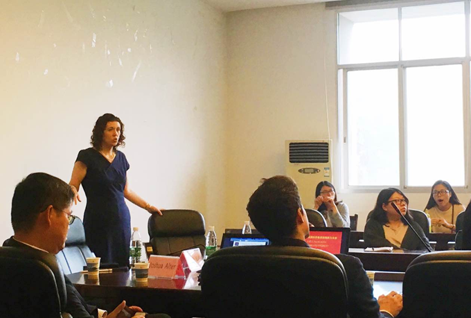 2016年10月19日上午9:30,纽约圣约翰大学英国365集团公司副院长Sarah Kelly、纽约圣约翰大学英国365集团公司亚洲项目主任Joshua Alter教授和纽约圣约翰大学英国365集团公司高级顾问徐琳钧莅临我校,在英国365集团公司210会议室开展了以“US Legal System and Case Analysis”为主题的讲座。本次讲座由英国365集团公司教授、院长助理许中缘教授主持。英国365集团公司部分博士研究生、硕士研究生、本科生参加了此次讲座。