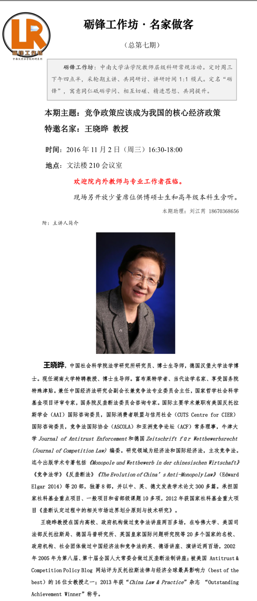 【砺锋工作坊·名家做客】王晓晔:竞争政策应该成为我国经济的核心政策