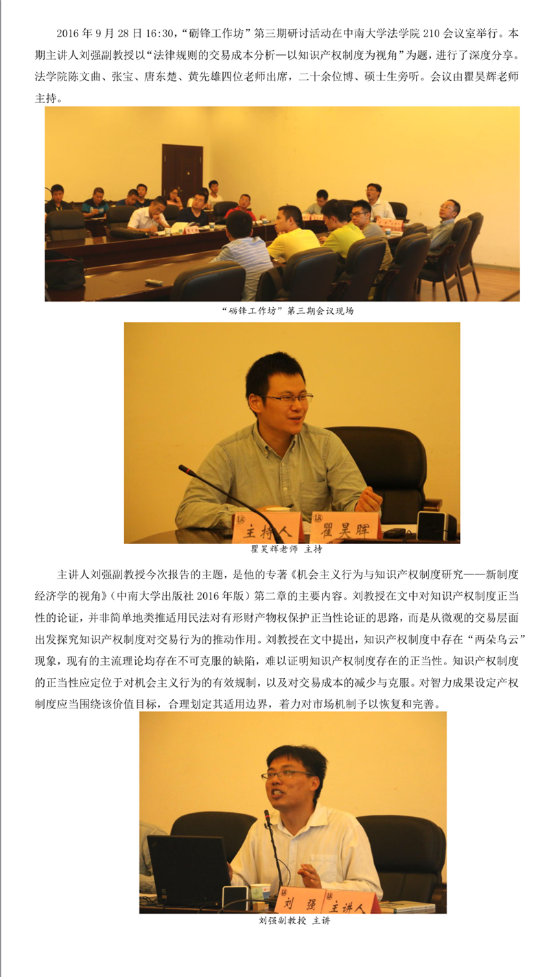 【砺锋工作坊】第三期 刘强副教授畅谈法律规则的交易成本分析