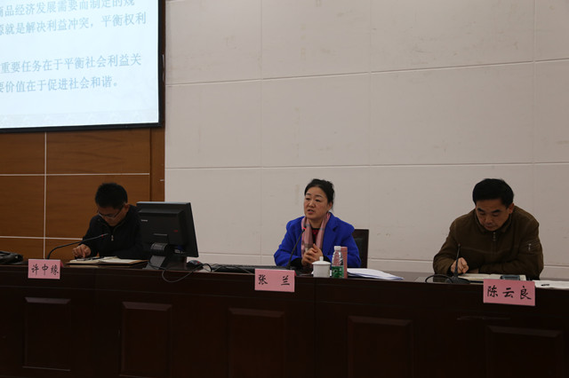 在随后的讲座报告中,张兰副院长从“天理、国法、人情”入手,指出司法审判应该坚持法理、法律与情理,面对的法律规范与社会现实的紧张关系,如何坚持适用法律,保障司法审判结果的法律效果与社会效果的统一,应该要要坚持法理、规则与情理的统一。张院长指出,民法是衡量一个社会文明进步程度的标准,学习民法应该具备的三种理念:规则理念、衡平理念、创新理念。张院长阐释了何为规则理念。作为法律人应该遵循规则,但遵循规则并不是机械的适用法律,而应该把握规则的本身与规则背后的法理。法律是刚性的,对于国家机关作出的某一行为,法律明确规定行为结果是绝对确定的,但法律一般是对行为目的,行为范围作出原则性规定,而行为的具体条件,标准等内容在一定幅度内留给了相关司法机关自行选择。接着,张院长讲述了何为法定与约定规则、何为保护第三人的规则、何为善意与恶意规则以及如何对这些规则进行适用。何为衡平理念。张院长指出,社会中利益错综复杂,不可避免的存在诸多冲突,因此,在法律规则没有规范的领地,需要运用衡平理念对法律进行漏洞填补。但衡平理念的实行首先要遵循既有规则,同时应该尊重法理与人情。何为创新理念,张院长指出,尽管民事司法不能改变社会,但民事司法能够对社会发展提供指引。但创新不是创造、创新是在法无明文规定法官不得拒绝裁判的基础上,在坚持相应法理、人情的基础上,恰当的运用法律漏洞填补规则对既有规则不足的领域进行司法适用。整个讲座中,张院长强调要做一个具有正义感的法律人,不能机械地理解法律,而应该正确的理解法律。讲座中,张院长结合了我国司法审判实践中一些著名案例以及国外发生的案例与著名法学家的精彩论述,整个讲座内容丰富、生动有趣。