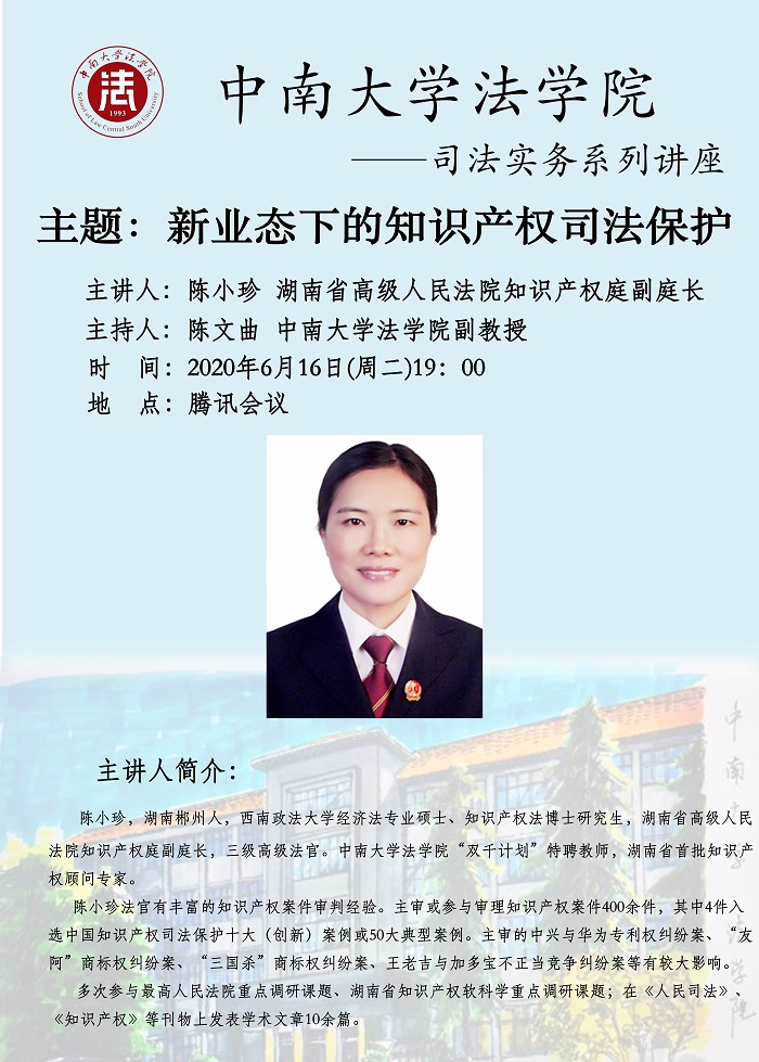 【讲座预告】陈小珍:新业态下的知识产权司法保护
