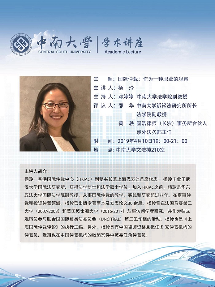 【讲座预告】杨玲:国际仲裁:作为一种职业的观察