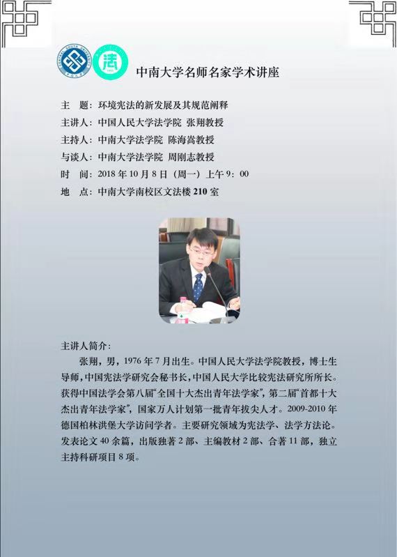 【讲座预告】张翔:环境宪法的新发展及其规范阐释
