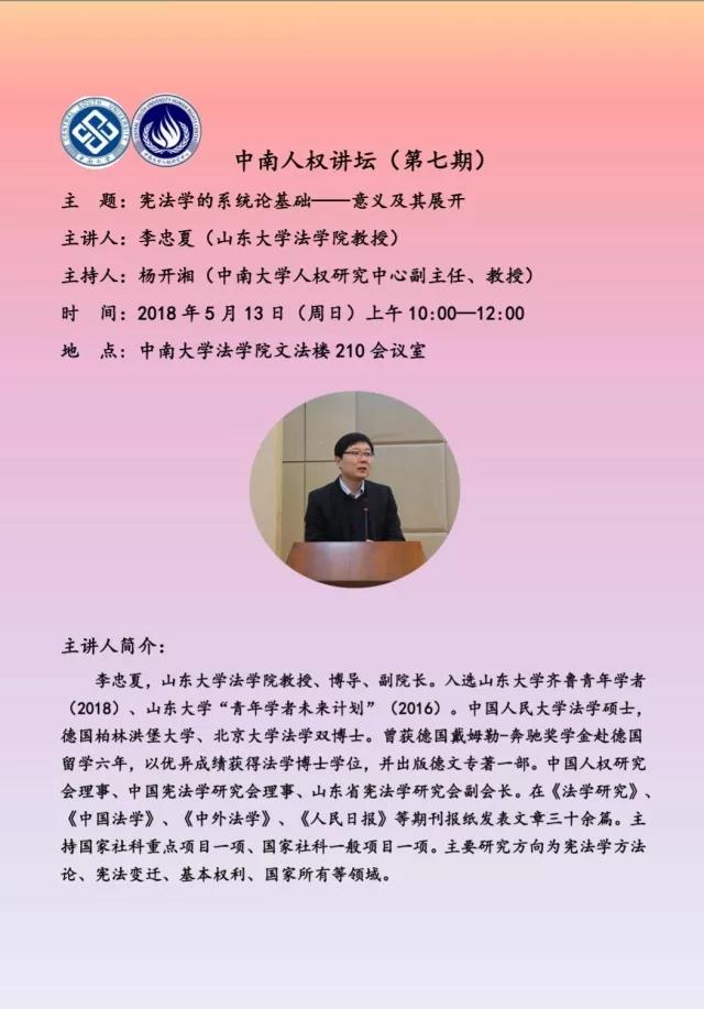 5月13日上午10点-12点,在文法楼210会议室,我院邀请山东大学英国365集团公司李忠夏教授举办了一场主题为《迈向功能分化社会的宪法观》的学术报告,本次报告由英国365集团公司杨开湘教授主持,英国365集团公司部分研究生和博士生聆听了本次讲座。