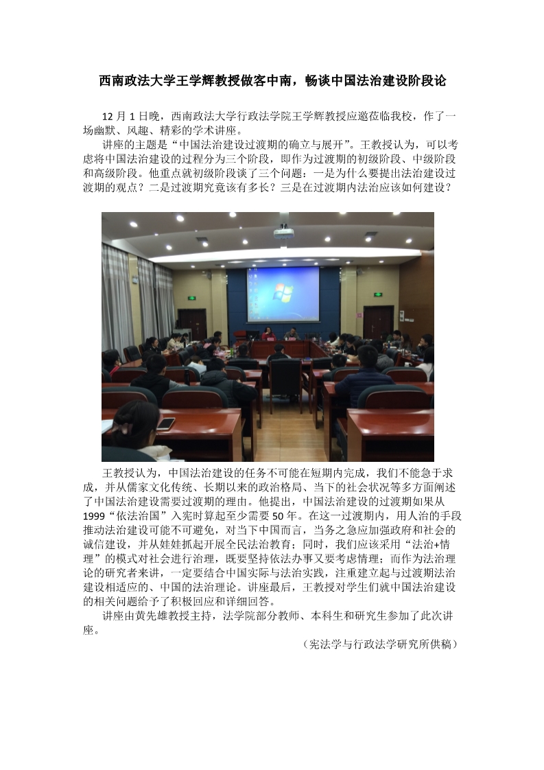 西南政法大学王学辉教授做客中南,畅谈中国法治建设阶段论