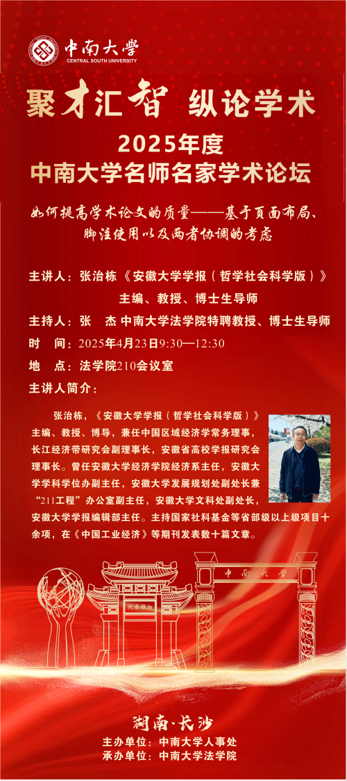 【讲座预告】张治栋:如何提高学术论文的质量--基于页面布局、脚注使用以及两者协调的考虑