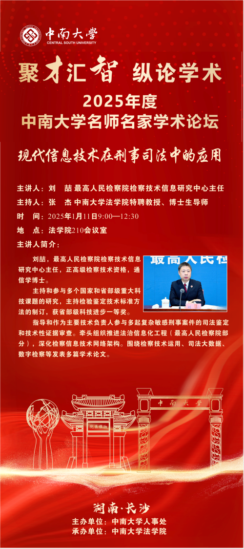 【讲座预告】刘喆:现代信息技术在刑事司法中的应用