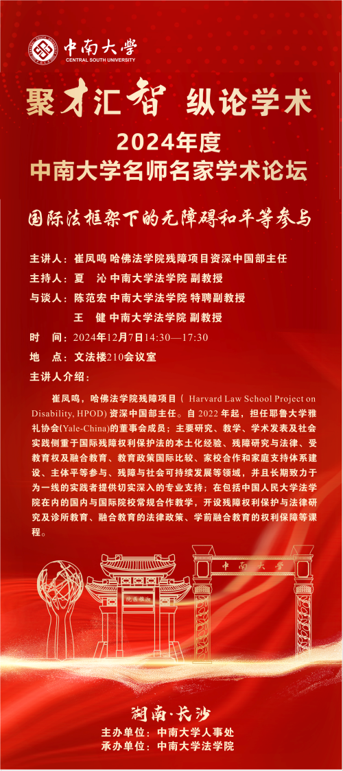 【讲座预告】崔凤鸣:国家法框架下的无障碍和平等参与