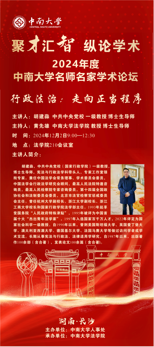 【讲座预告】胡建淼:行政法治:走向正当程序