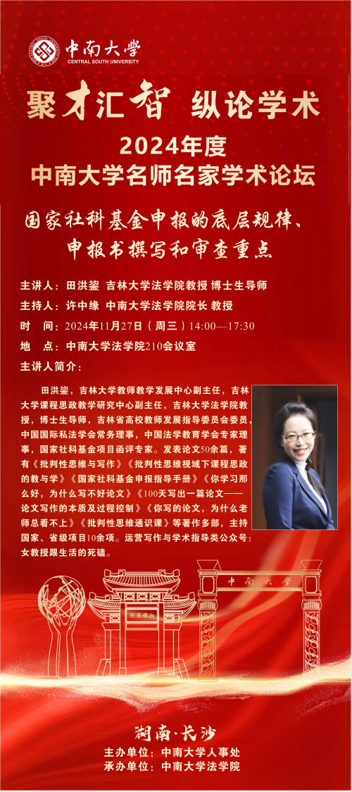 【讲座预告】田洪鋆:国家社科基金申报的底层规律、申报书撰写和审查重点