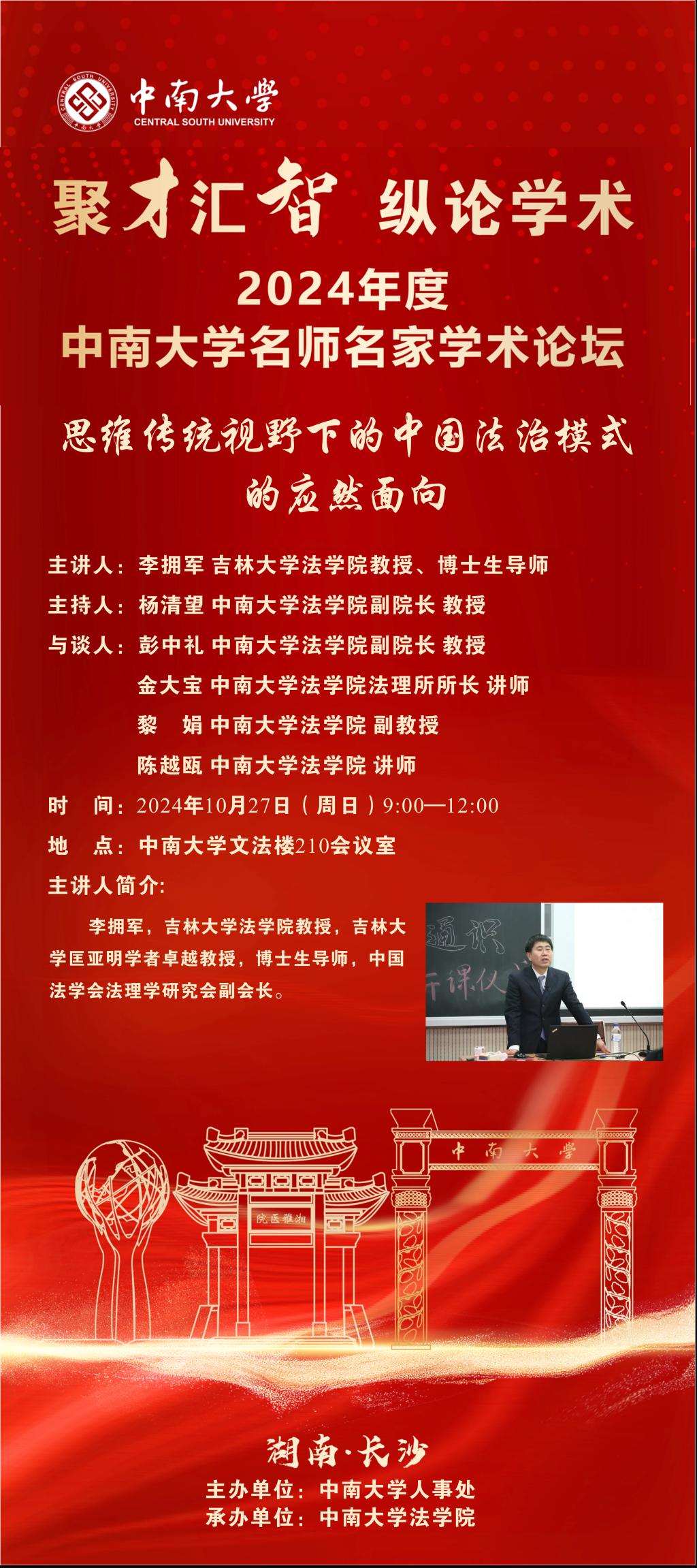 【讲座预告】李拥军:思维传统视野下的中国法治模式的应然面向