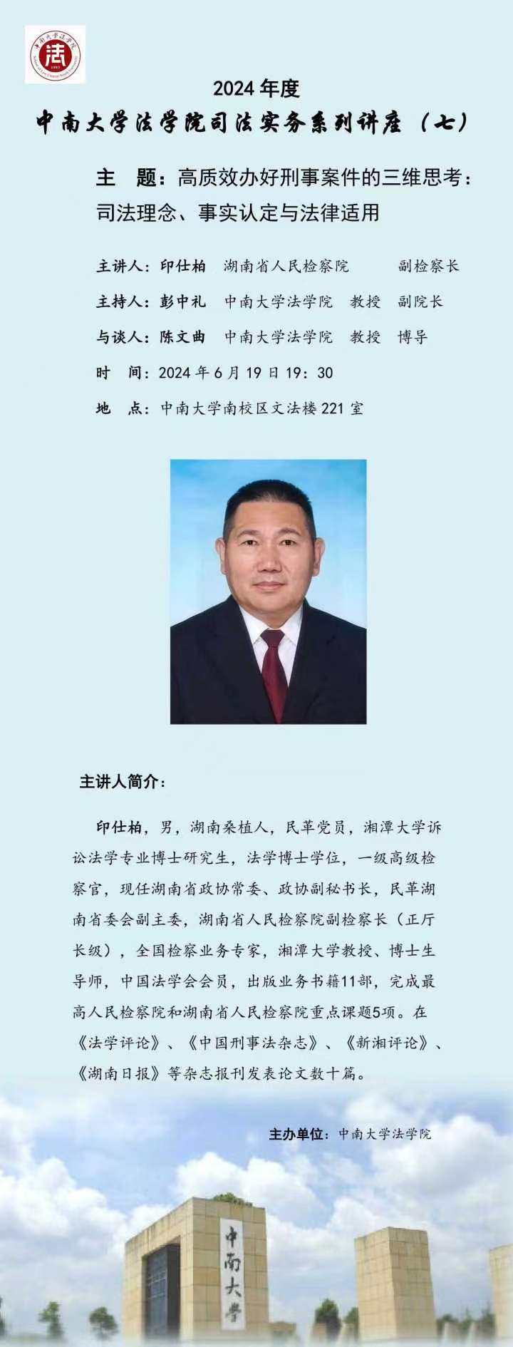 【讲座预告】印仕柏:高质效办好刑事案件的三维思考:司法理念、事实认定与法律适用